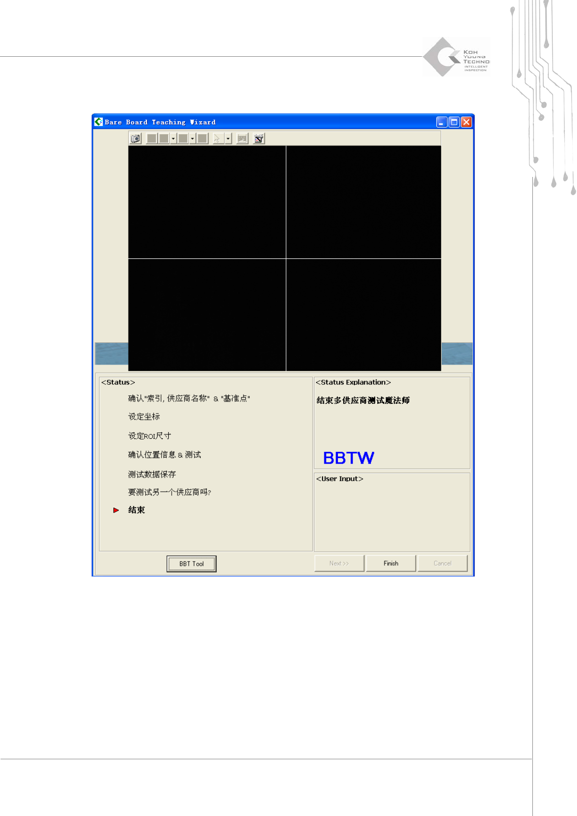 72 | 第 4 章 3D Inspector TM 版本 1.2 K OH Y OUNG T ECHNOLOGY I NC . 3.2.3.5. 坏标记识教 对于拼板 PCB ,如果 PCB 上有坏标记,则 3D Inspector™ 不会检测该 PCB 。坏标记的用途 是, 根据用户的设置,后台机器(取放机;装配机)有时不会将元件安装在拼板 PCB 中的特定拼板上。 因此, SPI 没有必要检…