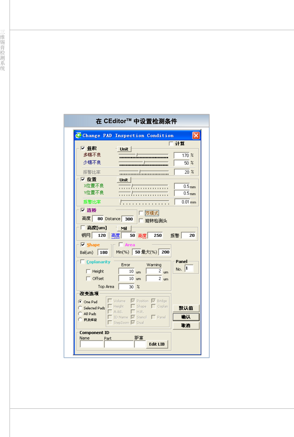 下面提供了“ChangePADInspectionCondition”(更改 Pad 检测条件)对话框的示例。