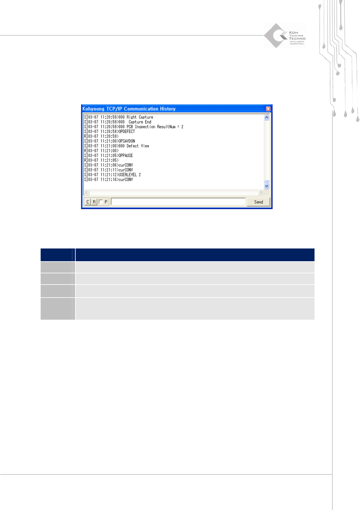 发送必要的命令。它用于在机器出现故障时检查命令数据。因此未提供关于此“Send”