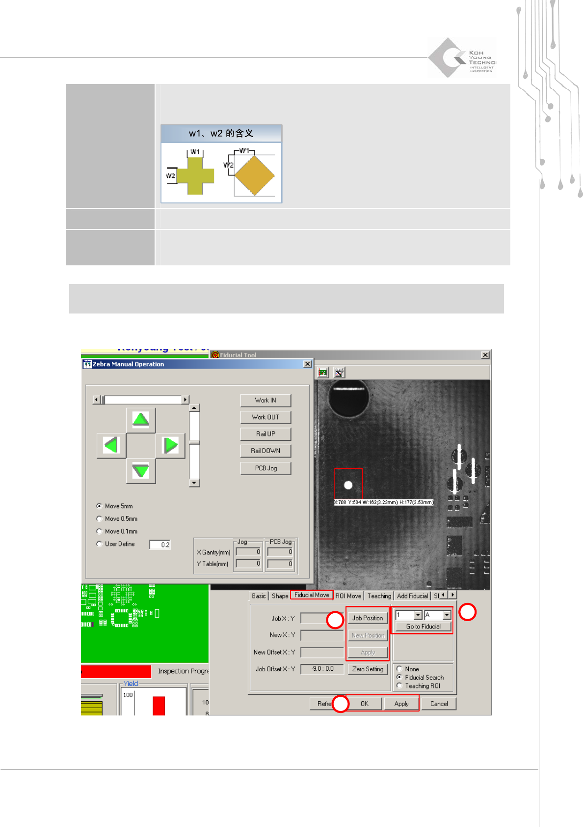 程序员手册 | 93 w1 , w2 设置某些基准点的大小 。目前仅应用了十字和菱形形状。对于其 他基准点形状, 则禁用“ w1 ”,“ w2 ”。 a1 , a2 目前无法使用。特殊基准点的初级设 置,供将来进一步使用。 “ Fiducial Te s t ” (基准点测试) 设置后,请单击此按钮。 检查机器是否根据新设置的基准点正 确运行(识别)。 注意 :如果在“ KYConfig ”( KY 配置)中启用了“ Globa…