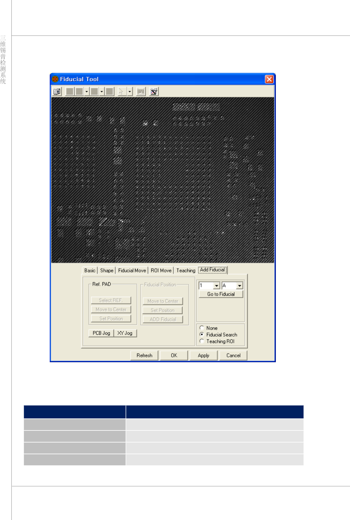 程序员手册 | 99 “ Set Po si t i on ”(设置位置) 指定光标位置。 “ ADD Fiducial ”(增加基准点) 增加基准点。 “ PCB Jog ”( PCB 方向盘) 移动 PCB 。 “ XY Jog ”( XY 方向盘) 移动屏幕