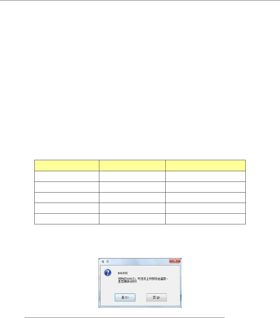 达不到所设置温度时,每进行 3000 次预热操作,会显示询问是否要持续进行预热操作的画面。
