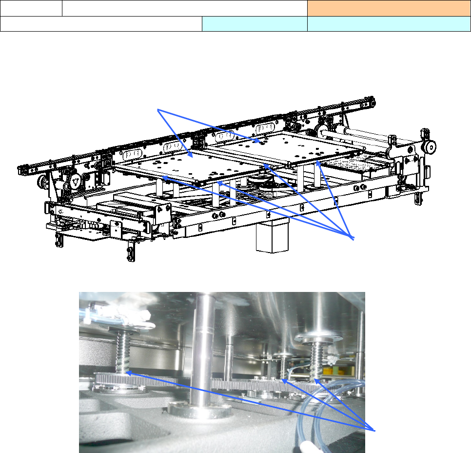 操作手册 3- 31 1 ) 在「台架定位销」和 「导轨轴」涂上润 滑油。 2 ) 在「台架定位销」的 接收侧(贴片机侧 )也涂上润滑 油。 1 ) 在「台架定位销」和 「 O 环」涂上润滑油。 注油项目 3-3- 8 统一更换台车 实施频度 : 2 个月 使用工具 : 毛刷 使用润滑油: 6459 润滑油 N 注油项目 3-3- 9 台架升降机 实施频度 : 2 个月 使用工具 : 毛刷 使用润滑油: 6459 润滑油 N 台架定位销…