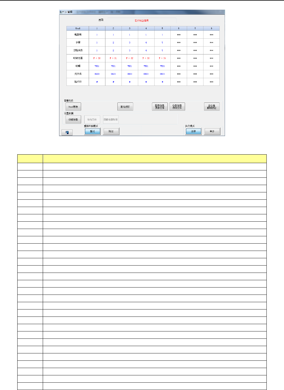操作手册 4-1 第 4 章 生 产时的错误处理 / 暂停 本节就生产中发生错 误时的处理,以及 暂停后的处理 进行说明。 4- 1 发生错误 勾选操作选项的[发 生错误时暂停]后 ,对象发生错 误时,会暂停生产, 并显示暂停画面。 这时,重试列表里显 示的错误为暂停的 对象。 生产过程中发生的错 误以及暂停时的内 容详述如下。 4- 2 发生时的概要 出现错误或暂停时, 会显示错误或暂停 画面。 按 < STAR T> 开…