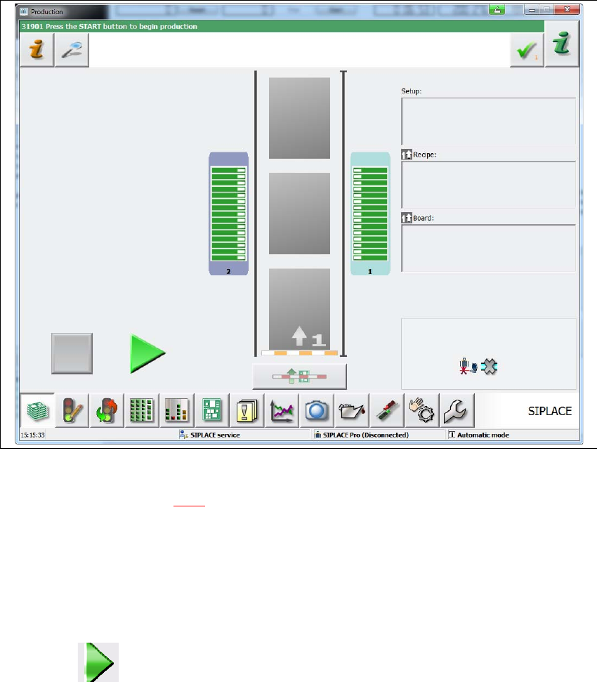 Rys. 5.3 - 1 Widok "Produkcja" po załadowaniu oprogramowania stacji (przykład dla SIPLACE E1)