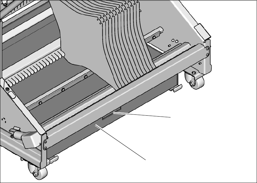 W celu opróżnienia pojemnik na pasy odpadowe musi zostać wyjęty ze stołu wymiennego. Istnieje