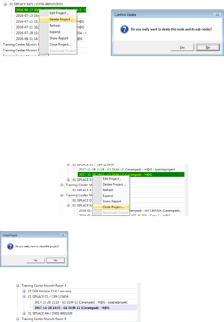 To delete a project, click with the right mouse button on the desired project and choose »De-