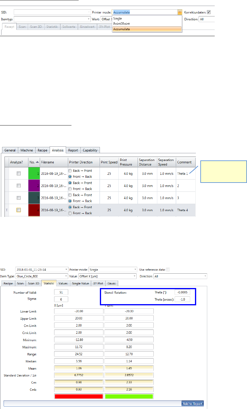 ASM AVS - U SER M ANUAL P AGE 114 OF 182 - Pr inte r Mo de “ Acc umul ate”: In thi s mod e, all m easu reme nt po int s from al l se lec ted m eas ureme nts are e valua te d to - get her. Thi s me ans, fo r exam ple , on…