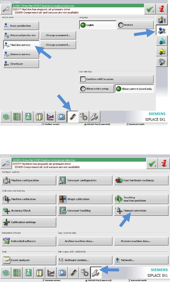 On machines from the generation S15, F3, two possibilities are existing, to correct the meas-
