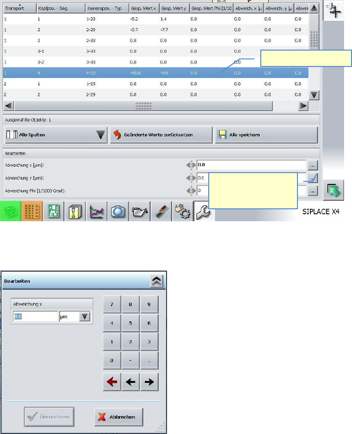 ASM AVS - U SER M ANUAL P AGE 160 OF 182 Sel ect the line re gardi ng co nvey or t rac k ( row 1 ), Head – segme nt (row 2) a nd cam era t ype (ro w 3) . A w indow a ppears , i n wh ich you c an ente r t he me asur ed Of…