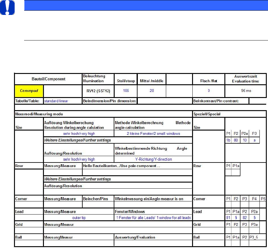 These values form a database. However, the illumination values in particular also depend on the
