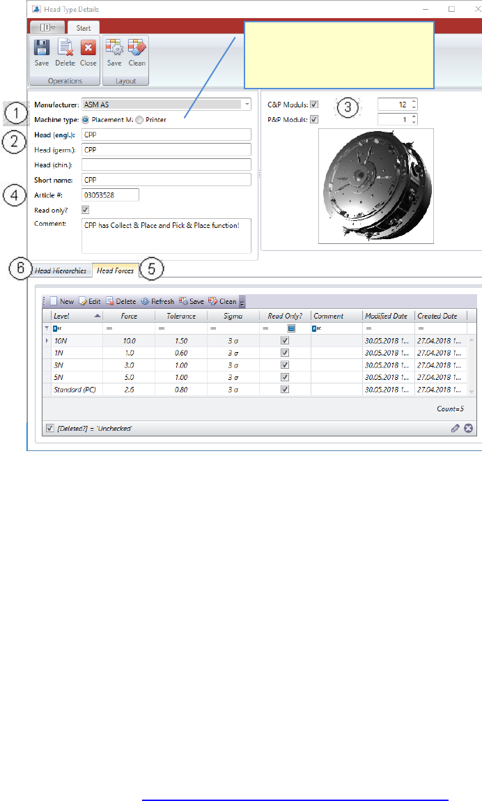 3. Select if the head can produce in Collect & Place mode (C&P) and/or in Pick & Place mode