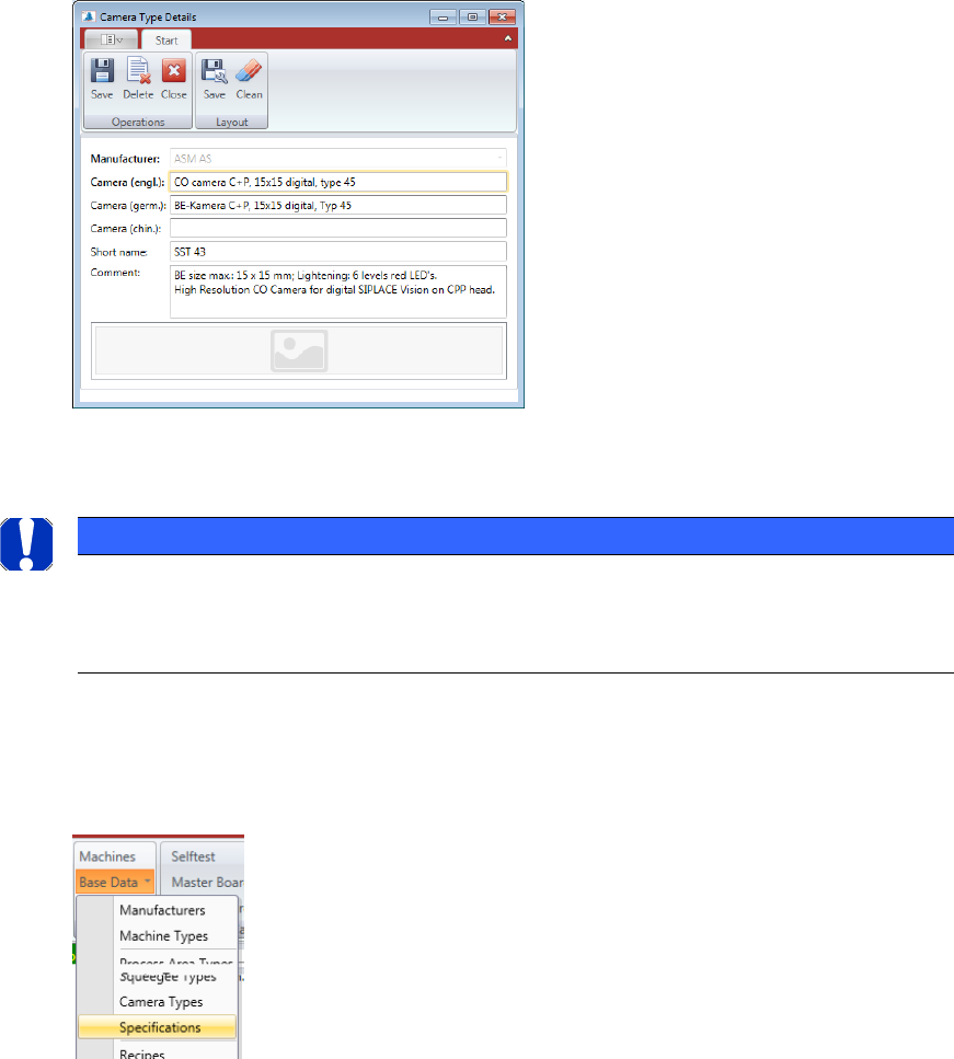 The configuration of „Machine Type” -> “Head Type” -> “Camera type” leads to a specifica-