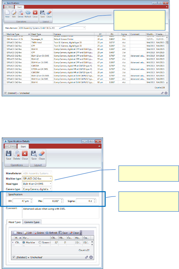 In the “Specification Details”, you must configure “Machine Type”, “Head type” and “Camera