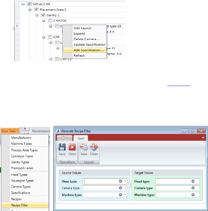 • With right mouse click on a Specification you can “Add Specification…” or “Update Speci-