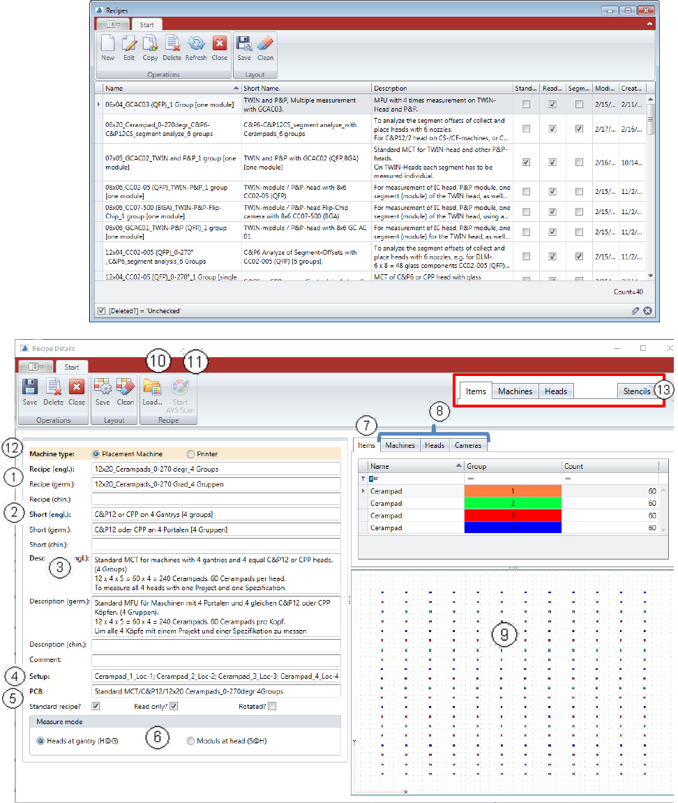 ASM AVS - U SER M ANUAL P AGE 68 OF 182 5.2.18.12 Base Data – Recipes A Re cipe i s a m easu reme nt p lan , a d escr ipt ion o f t he gl ass plat e w ith t h e co mpo nent s pl aced on it, or w ith pri nted forms (c irc…