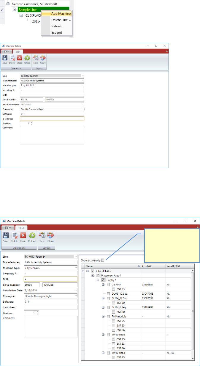 Now you can reassign "Country", "Customer", "Line" and the "Position" of the machine in the