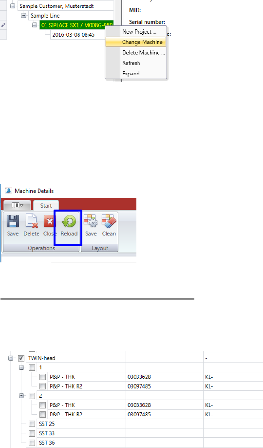 (machine number) and choose the »Change Machine« function.