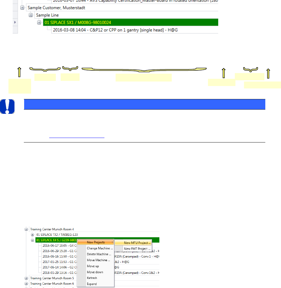 Click on the in front of the machine, to list the projects, which are depending to this machine.