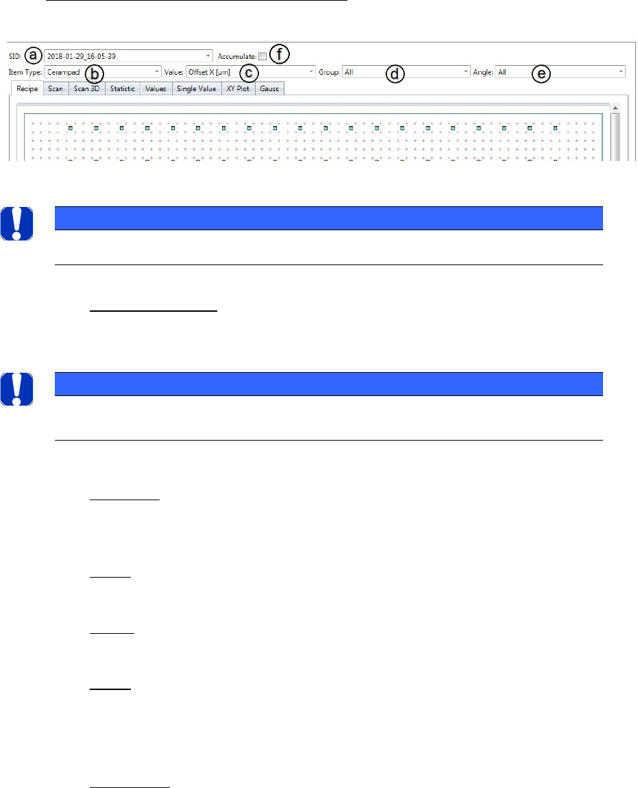 ASM AVS - U SER M ANUAL P AGE 92 OF 182 De tails to the are a (3 ) „R esu lt A r e a“ a. Reci pe: Show s t he r ecipe (mea surin g pl an), w hat is m easu red in the projec t, as a n im age . Thi s is the onl y t ab, w h…