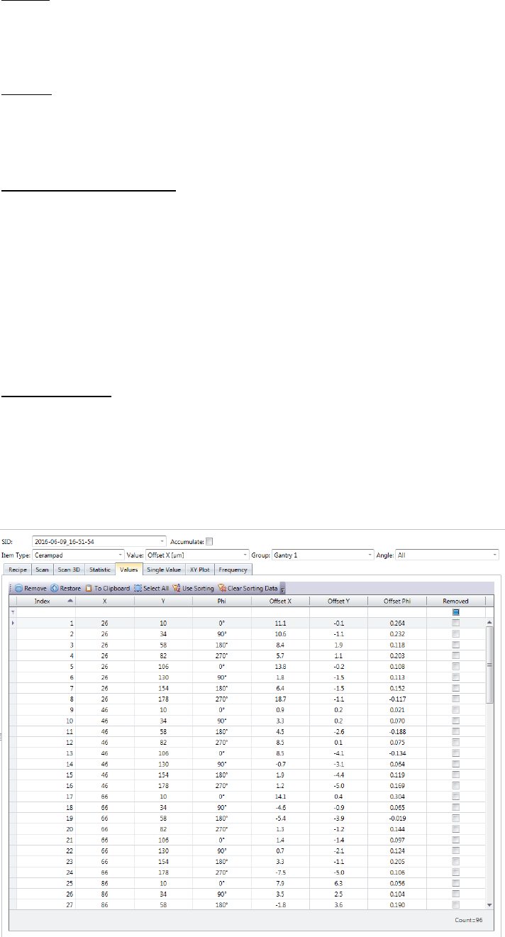 "Remove". The checkbox in the „Removed” column indicates whether a measurement