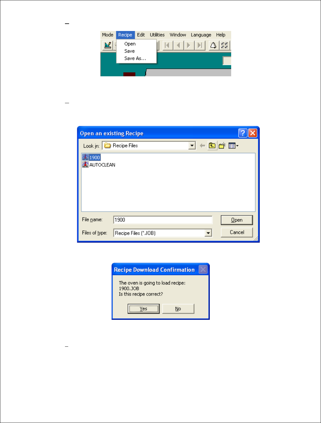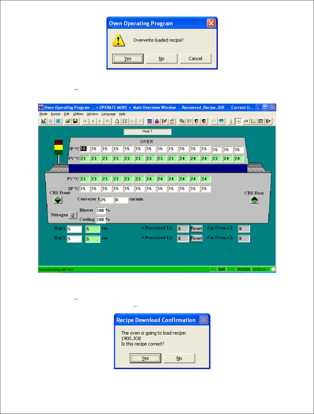 26 图 14 点击 “否” ( N o ) , 将提示用户从控 制器恢复配方。 参见以下 图 15 。 “恢复配方” ( Recove red_ Recipe ) 为通过控制器的已有运行配方。 图 15 点击 “是” ( Y es ) , 将提示用户用新的配方覆盖控制器已有运行的配方。 选择配方后, 将询问用户 “ 确 认配方下载” 。参见 图 16 。点击“是” ( Y es )将下载所 选配方。 图 16