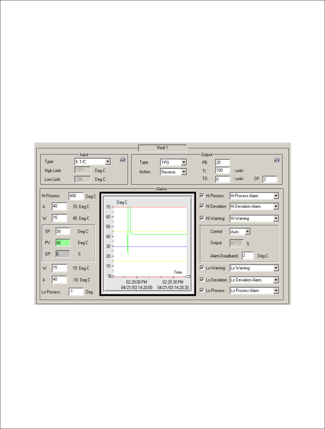 3、 报警和警告部分包含的编辑框,允许用户输入设定点和工艺值的偏差量,作为冗余报警设定点。