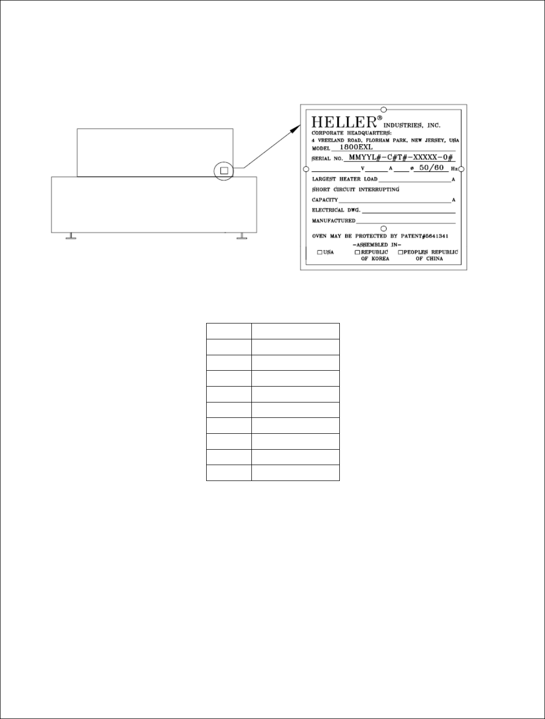1. 序列号标牌位于上壳的后部。标牌上列出了回流炉型号、电压和最大电流负载。另外,回流炉的多种参