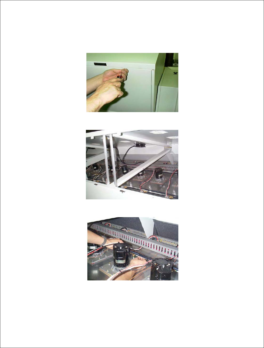 11 8 III .更换吸风机电动机 拆卸 1 、 关闭主 电源。 2 、 从顶盖 的后侧角落拆下螺钉。 3 、 升起顶 盖,使之支撑在其压杆上。 4 、 断 开氮气管 道。 (如果适用)