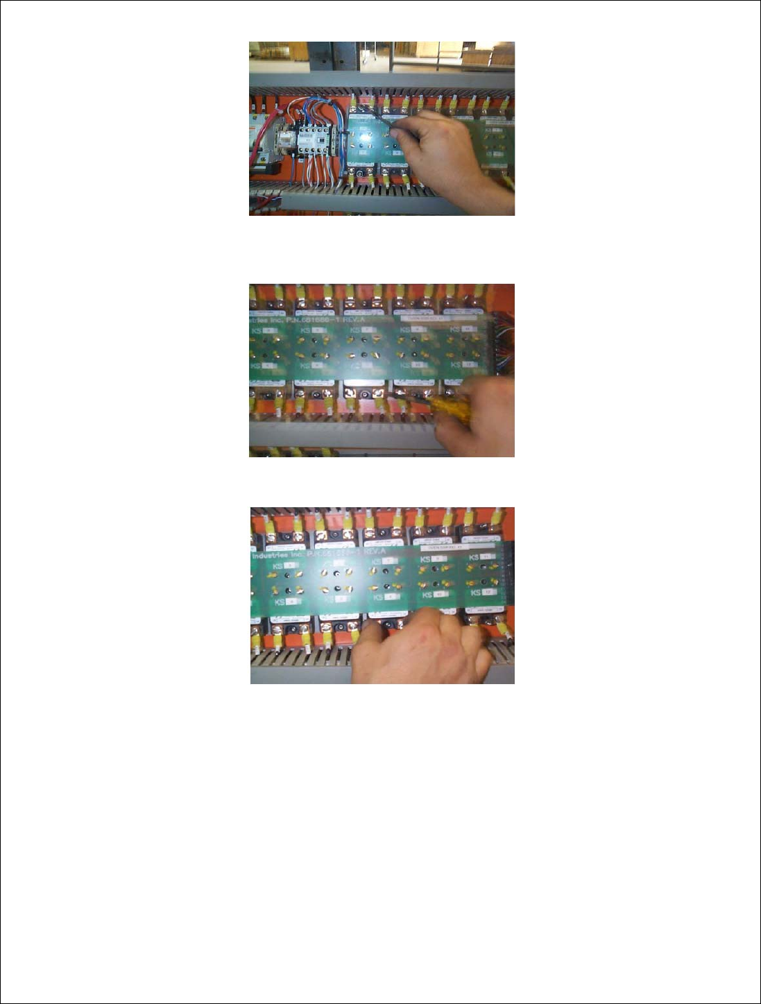 4、 找到问题加热区对应的固态继电器。拆下将固态继电器固定在继电器板上的四个螺钉,并拆下