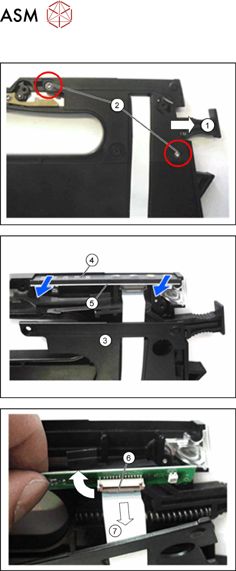 ► Pull the flat ribbon cable(7) out of the flat ribbon
