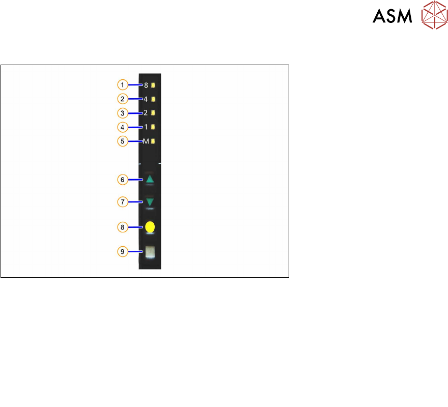 7 Repairs to SmartFeeder 8 mm X / Xi 7.16 Control board Service Manual SIPLACE SmartFeeder 4 - 8 mm X / Xi SIPLACE SmartFeeder 2 x 8 mm X / Xi 11/2020 161 7.16.3 Performing a reference run Fig.53: Control panel 1. LED 8…