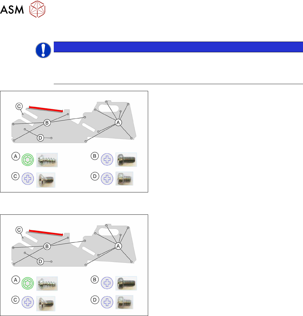 pletely fixed in place with all screws. If not, the threaded bolts could be damaged on the