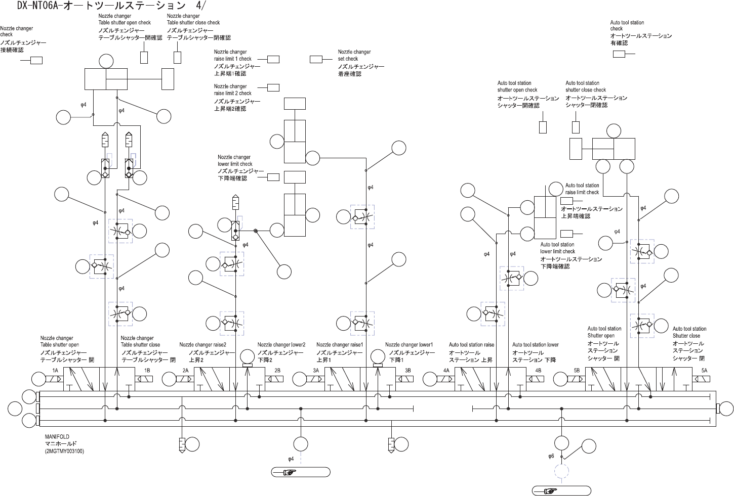 DX-NT06A-AUTO-TOOL ST ATION 4/ DX-NT 06A-オー トツー ルステ ーション 4/ 2UGTMY 000309 No. Drg.No. & Cod e No. QT Y Description Ra ting Re marks 番号 図番 & コード番号 個数 品名 規格 備考 1 H1122 4 4 VA LVE, SOL バルブ SO L SY322 0-5MOZ-M5 2 H6…