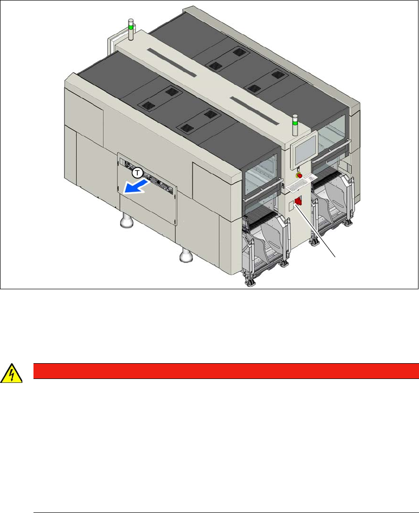 Bild 2.9 - 1 Strömförsörjningens placering på automaten (SIPLACE X2 S/X3 S/X4 S som exempel)