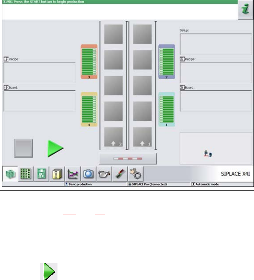 Bild 5.3 - 1 Vyn "Produktion" när stationsprogrammet laddats (exempel med SIPLACEX4i)