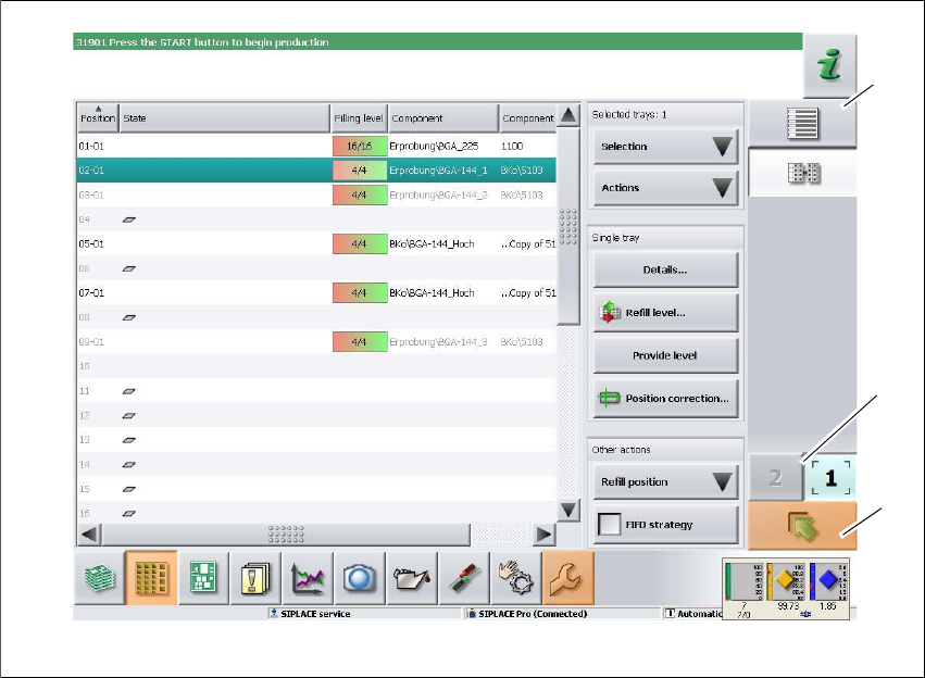 Bild 5.5 - 4 Användargränssnittet i vyn "WPC" (exempel med SIPLACE SX2)