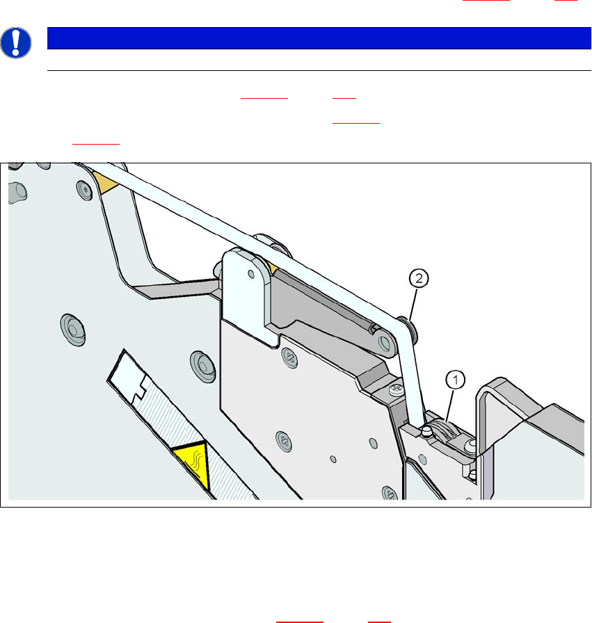 Dra täckfolien över täckfoliearmen (pos. 2 på bild 5.10 - 7) fram till stoppningshjulen (pos. 1