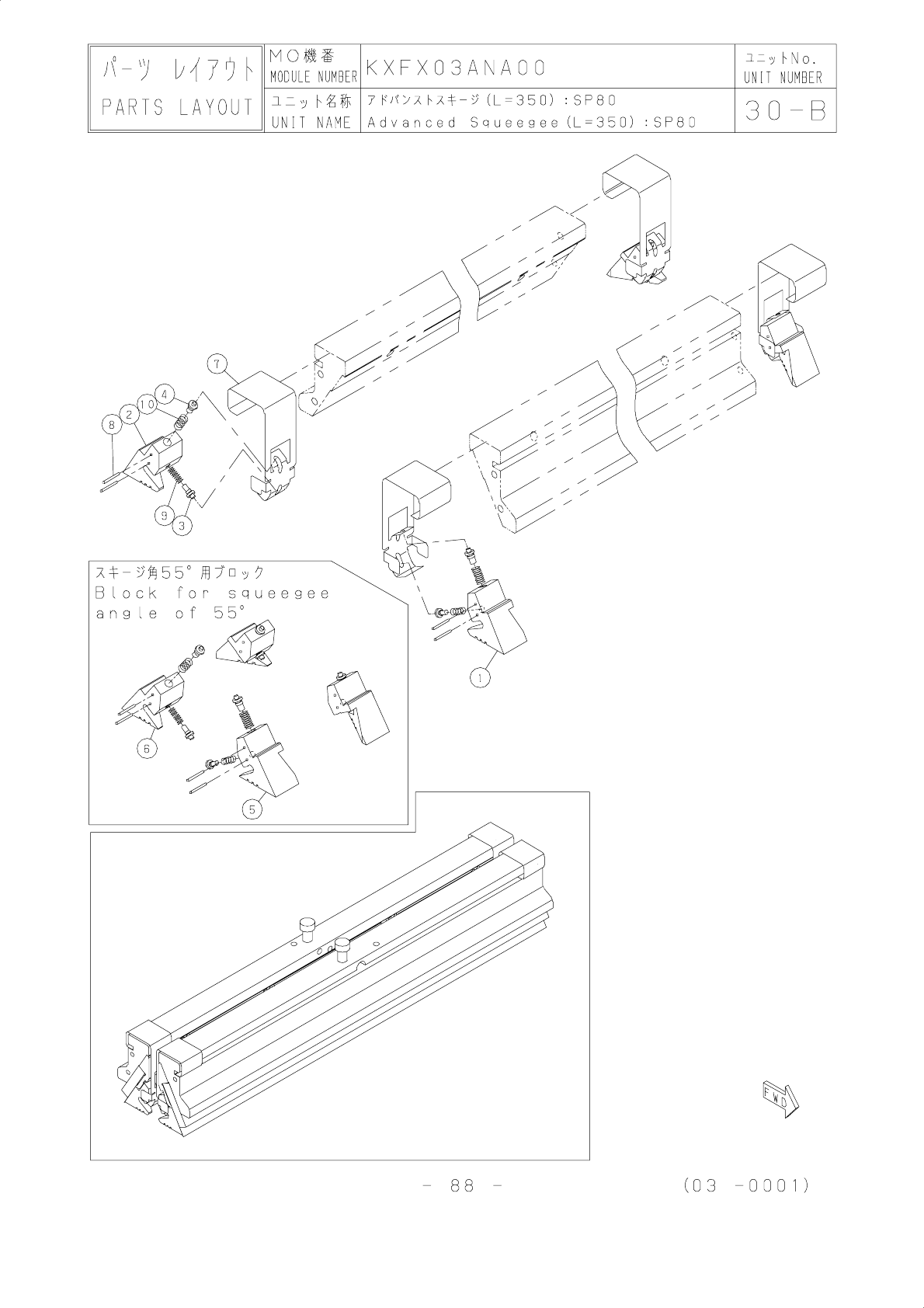 1 N210001337AA HOLDER 1 2 N210001338AA HOLDER 1 3 N210001339AA HOLDER 1 4 KXFB0353A00 PLATE 2 5 KXFB08MDA00 BOLT 2 6 KXF0DY1PA00 SQUEEGEE Dimpie metal squeegee 350×40×0.2 2 A 7 KXF0167AA00 BALL-BUTTON BBT8 2 8 KXF0DXJDA0…