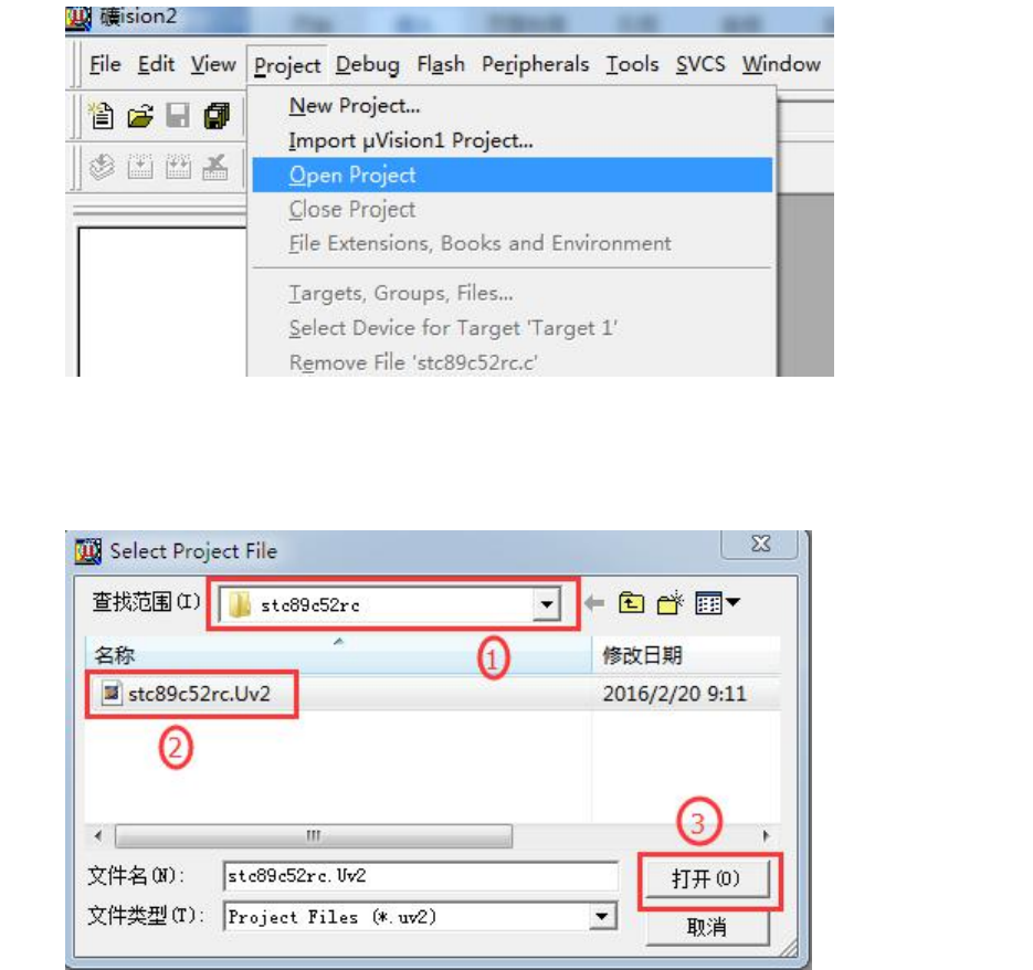 【5.4 keil2 如何打开一个现有的工程?】