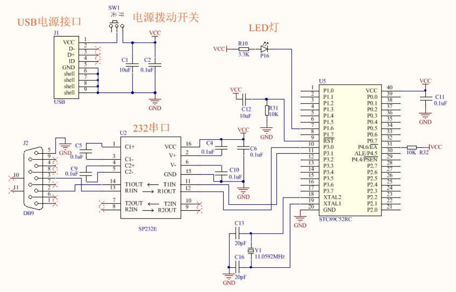 图 8.2.2 带串口的单片机最小系统