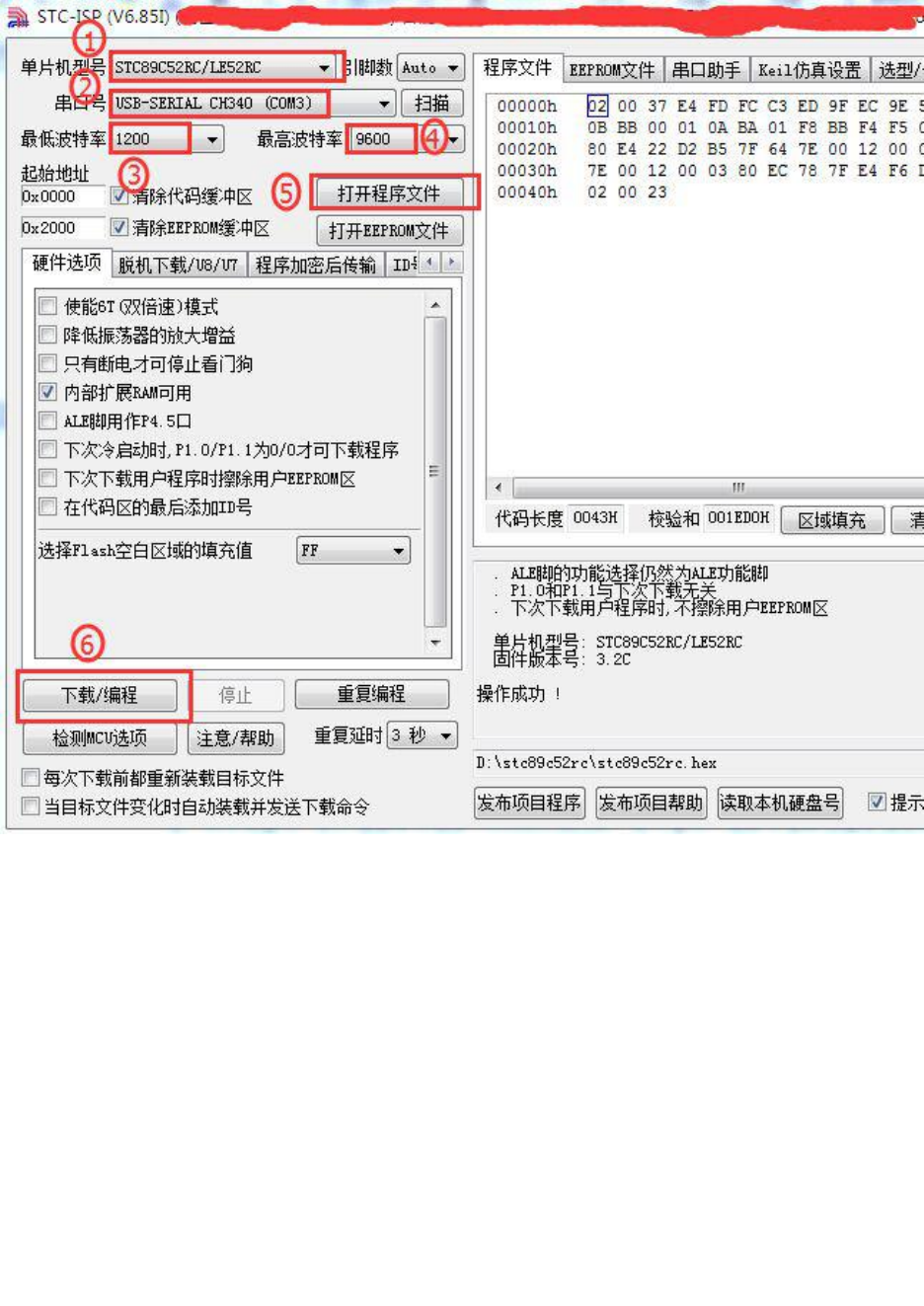 第七步:导入.hex 格式的机器码文件。