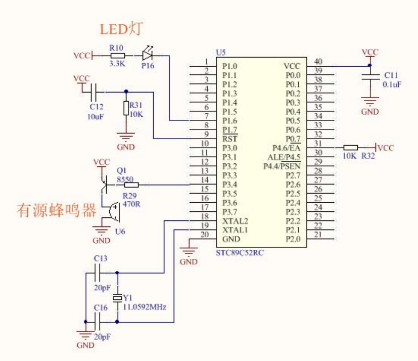 图 10.1 本节示例程序匹配的单片机驱动电路原理图