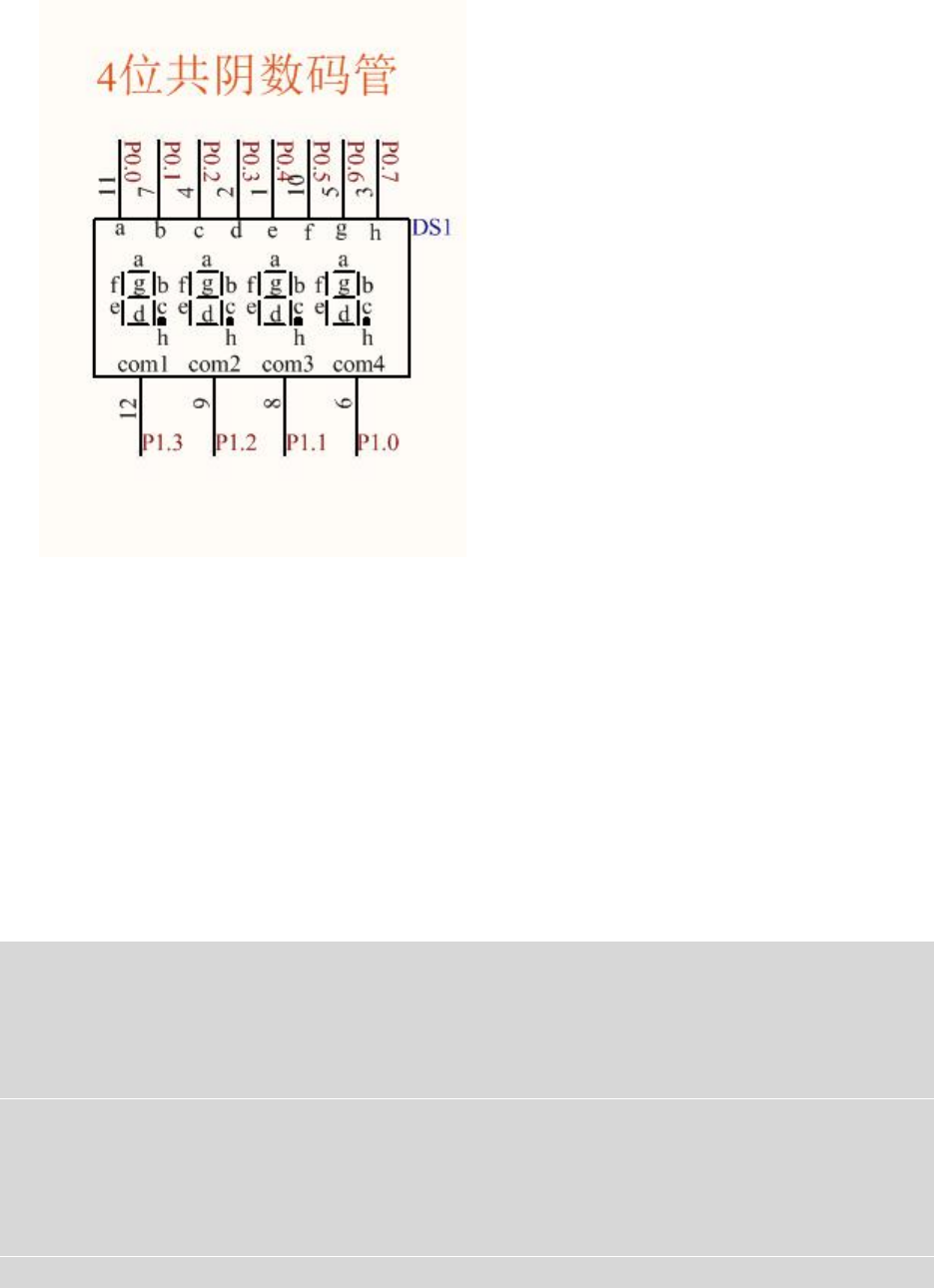 sbit P1_0=P1^0; //右起第 1 位数码管的公共端 com4