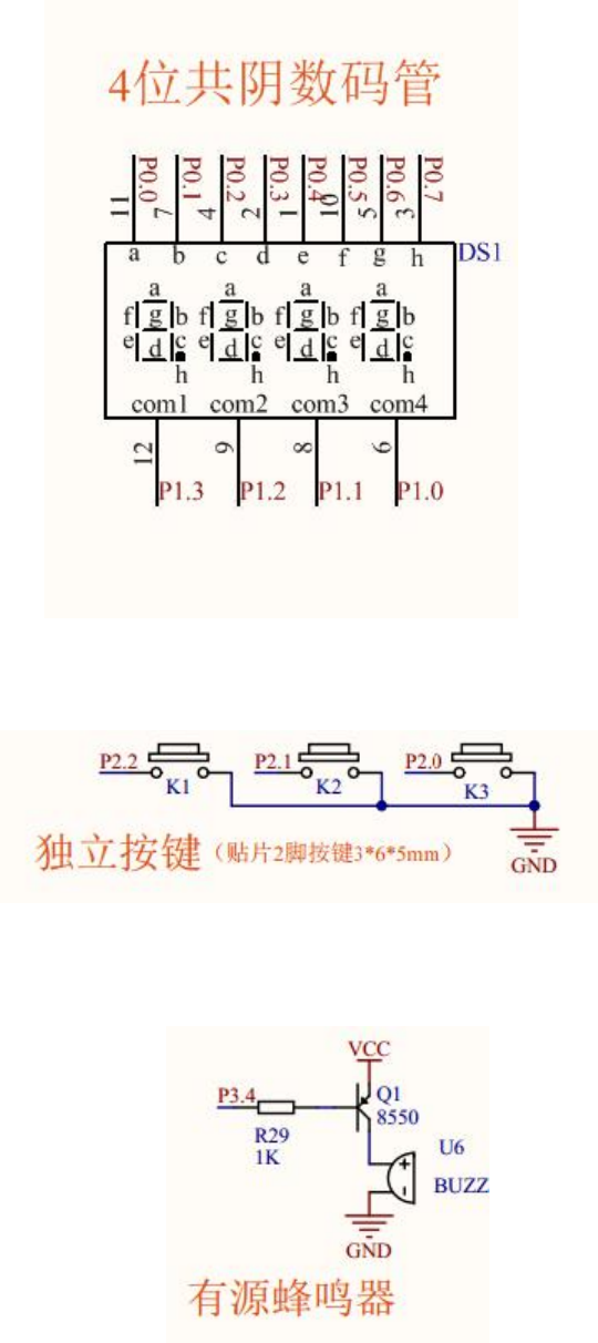 第一百一十七节: 按键切换数码管窗口来设置参数。 【117.1 按键切换数码管窗口来设置参数。 】 上图 11 7.1.1 数码管 上图 11 7.1.2 独立按键 上图 11 7.1.3 有源蜂鸣器