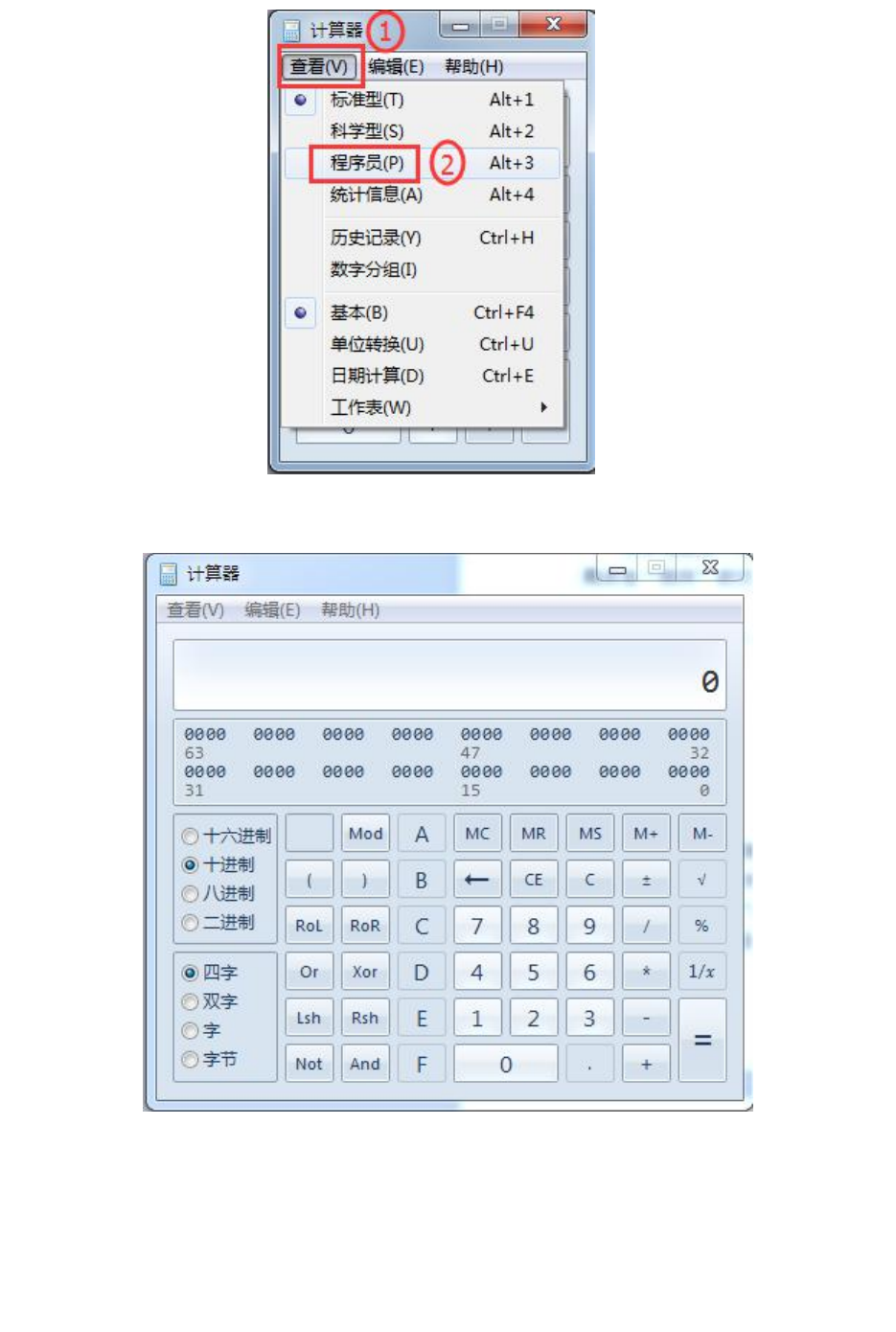 图 16.2.2.1 把“计算器”的主界面切换到“程序员”界面