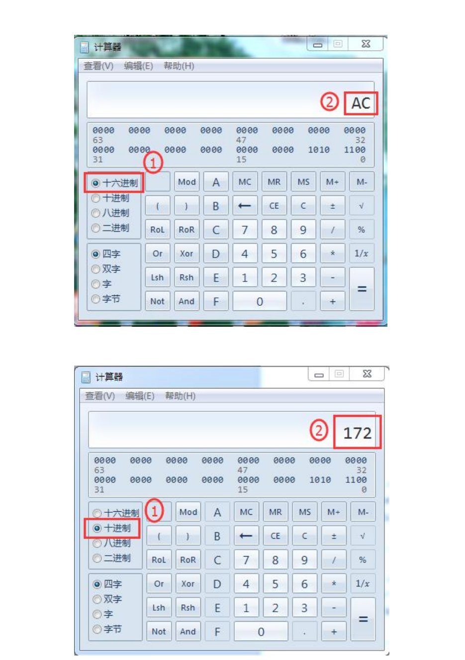 第三步:十进制转换成十六进制的方法。