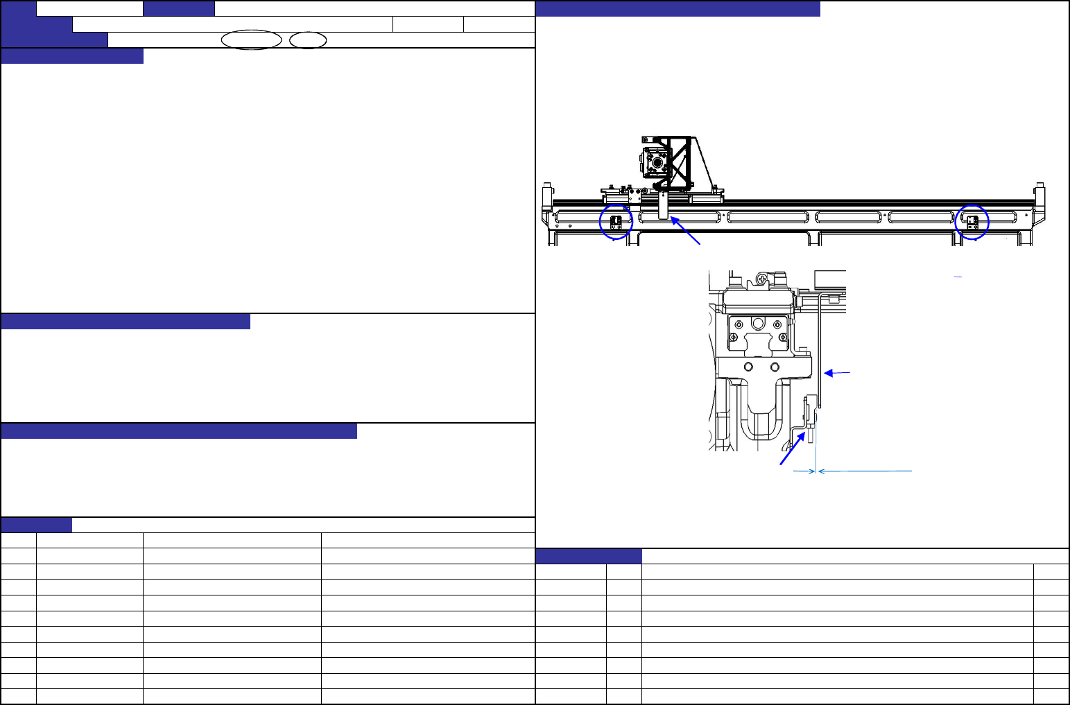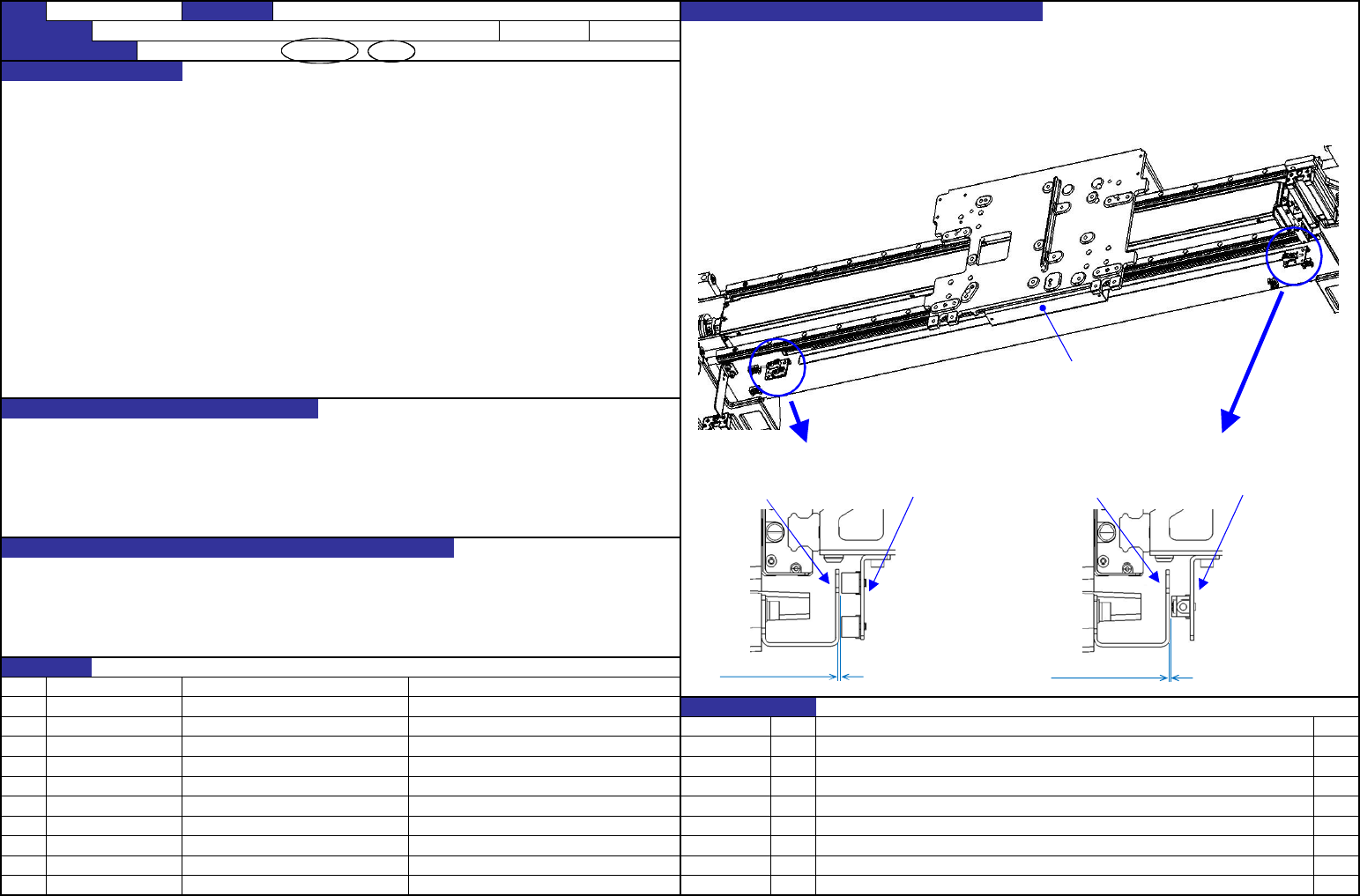 QA表 机种 确认方法 1. 测量各传感器(前1处,后1处)与Y 传感器止动卡具的距离,确认在 0.8~1.5mm 的范围内。 调整方法 各传感器与Y传感器止动卡具的距离在 0.8~1.5mm 的范围内(目标 1.0mm) 1. 调整Y 传感器止动卡具的位置,使与传感器的距离为 0.8~ 1.5mm(目 标1.0mm)。 用Y 传感器止动卡具无法调整到位时,要调整Y传感器BR位置。 原点及极限位置的检测 1. 原点复归不良 2. X 轴…