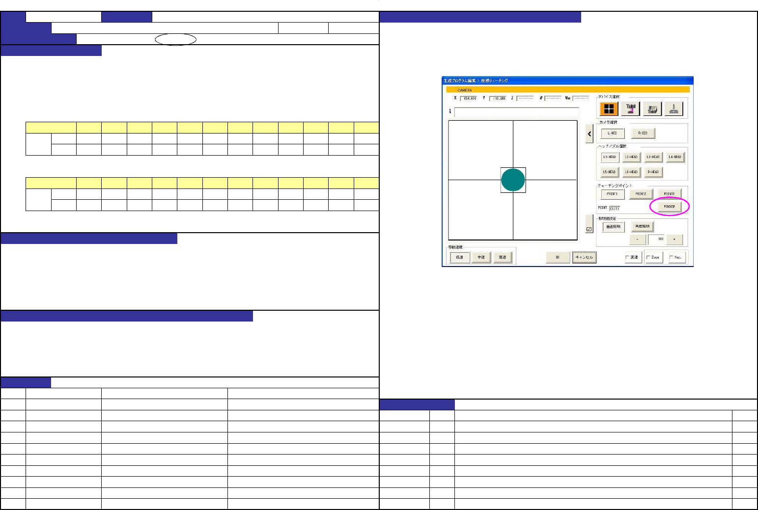 QA表 机种 将治具送料器安装于、 1、5、10、11、15、20、21、25、30、31、35、40 的位置。 将台架装在KE3020V主机上,测定治具送料器的P.P位置,确认符合规格值。 ※ 测量P.P位置时的示教中,应使用示教点“WINDOW”(参照下图)。 治具送料器(治具)的P.P位置(X 、 Y):对设计值 ±0.05mm。 【设计值】 前侧 1 5 10 11 15 20 21 25 30 31 35 40 X 0.65 …