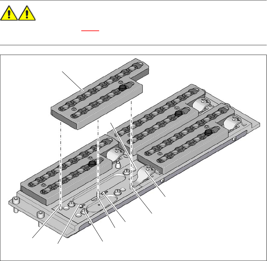 Üzemeltetési útmutató SIPLACE SX1/SX2/DX1/DX2 6 Állomásb ő vítések Az SR.705.xx szoftververziótól Kiadás: 10/2011 HU 6.1 Pipettacserél ő 319 FIGYELEM! 6 A tár fölé kiálló kar (1. poz. a 6.1 - 4 ábrán) a beültet ő fej ütk…